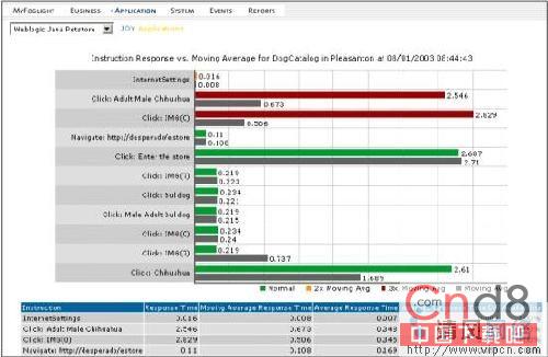 参考下面图4。你能看到一个业务过程可能由十二个用户动作组成-点击或图象下载-的信息,这些信息显示了超出阈值的步骤。通过这个,IT系统治理员能够立即诊断问题并把重点放在超出阈值的IT资源上。
