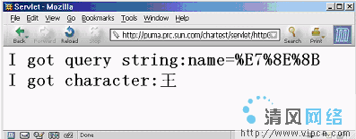 且慢!为使测试更能说明问题,我们在测试代码中加入POST功能,让用户通过HTML的Form标签提交UTF-16编码的字符。从本文的资源一节中下载下面的示例程序:servlet PostForm.java和servlet ByteTest.java。Servlet PostForm.java用来输出一个用UTF-16编码的页面,它有一个用来向服务器提交数据的表单。在ByteTest.java里,由于不能确定服务器是否配置为UTF-16编码方式,我没有用request.getParameter()方法显示浏览器提交的数据,而改用request.getInputStream()方法从请求中提取原始数据,然后打印从浏览器得到的每一个字节。
