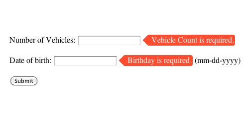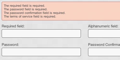 jFormer,形成框架的jQuery之上,带来了一个完整的,易于使用的 。它使我们能够建立验证客户端和服务器端(PHP解决方案包括)与各个层面的提示和CSS的造型,他用ajax技术来验证