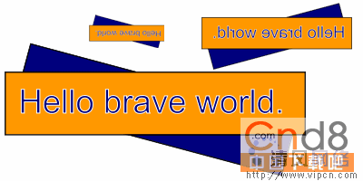 伸缩性好是另外一个重要的优点。矢量图可以很清楚的进行变换,因为它们的绘画指令是和分辨率无关的。图2显示前一张图片进行等比例缩小、翻转和旋转后的图像。