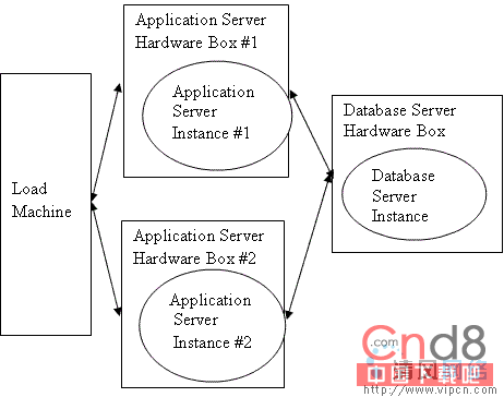 注:在上面的两台机器的测试中,负载平衡是通过一种不增加应用服务器实例功能负载的方式来处理的。但是在实际的生产环境中很难做到。