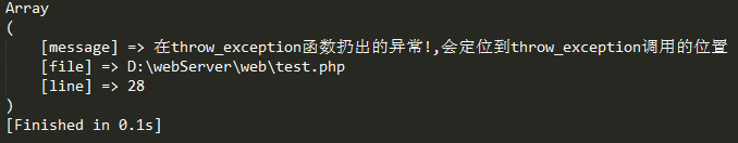 throw_exception('在throw_exception函数扔出的异常!,会定位到throw_exception调用的位置');