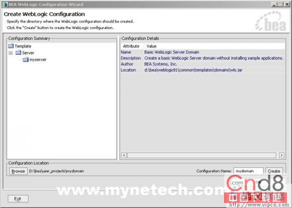 2. Step by step, 安装完毕后,我们要配置自己的domain,点击"开始/程序/BEA WebLogic Platform8.1/ Configuration Wizard"(图一),选择"Create a new Weblogic configuration", "NextàBasic Weblogic Server DomainàNextàEXPressàNext" 输入"Name*,PassWord*,Description"(图二) 接着Nextà右下角修改"Configuration Name: à Create"(图三) 一直到进度条为100%时 Done完成。