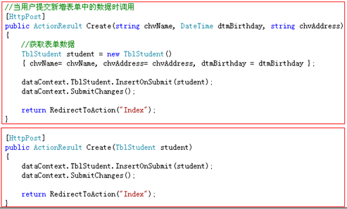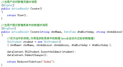 我们将加载新增|修改页面时被调用的action,添加[HttpGet]特性标记;将处理页面提交的表单数据时调用的action,添加[HttpPost]特性标记.