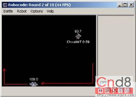 因为它几乎总是在动,而Sample里面的机器人的射击方法几乎都是直接射击敌人的当前位置,由于子弹到达目标需要一定的时间,当子弹飞过去的时候,Wall已经不在原来那个位置了,所以它们总是打不到它,因此在刚开始时它看起来是那么的强大。但是,Walls并不能算一个优秀的机器人,它仅是作为一个例子来介绍robocode机器人的制作方法,稍厉害一点的机器人都能很得心应手的射击它,有的机器人甚至能枪枪必中的打它。他们大多运用了提前量的算法计算出子弹到达Walls的时候Walls大概走的距离,然后攻击Walls下一步将要行走的地方。至于怎样编码实现,已经超出了这篇文章的范围,你可以参考Predictive targeting。