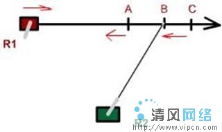 对于另外一种直线随机距离往返运动的机器人(前面提到过的一个建议Random),你可以看图5。你计算到假如你射击B的话,子弹到达B点的时候敌人R1也恰好到达B点处,但是R1随时都有可能改变方向返回,这取决于random()方法。假如刚开始ahead(Math.random()*200)中Math.random()返回一个很大的值,大到足以使R1运动到B点甚至超过B点,那么你将击中敌人;假如这个返回值很小,使R1还没到达B处就返回了,这样你这发子弹就浪费了。所以说你仍然有机会击中它,它并不是难以把握的,只是什么时候能击中什么时候不能击中,谁都说不清楚。