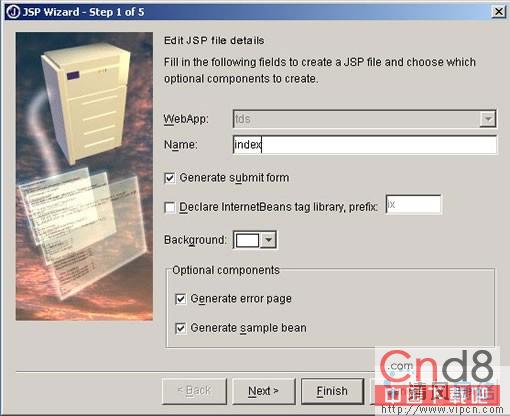 接下来,我们要新建一个jsp文件,一样点新建,在WEB下选择JAVAServer Page,按它的默认点下一步即可,它会自动创建一个JAVABEAN