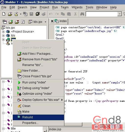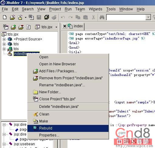 首先,我们要把自动生成的这个BEAN编译为class,选中它,点右键,在出现的菜单选Rebuild编译