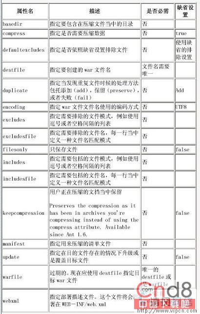 war任务可以包含像fileset及zipfileset这些指定在.war文件中应该包含有什么文件的元素。war任务可以通过这些元素来指定各种文件应该放在什么地方: