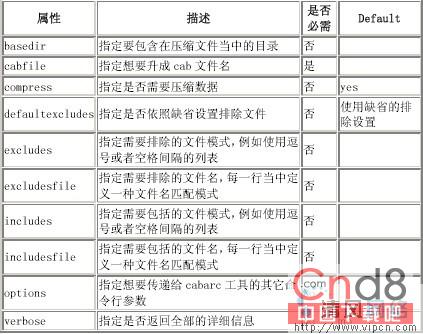 cab任务的作用是建立Microsoft.cab 档案文件,cab任务的使用方法类似于jar或是zip任务。.cab文件相当于.NET系统的.war文件,用于部署.NET应用程序到服务器。这个任务在Windows环境下使用外部工具cabarc(Microsoft提供)工作,cabarc必须包含在执行路径当中。