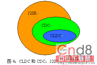 CDC是CLDC的完整超集,包含了所有的CLDC规范。另外,在相对充裕的条件下,它支持J2SE的标准 Java 虚拟机和一部分核心类库。
