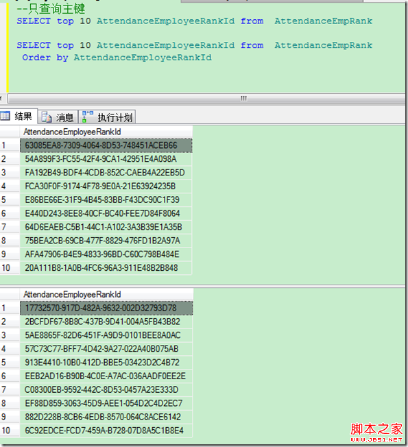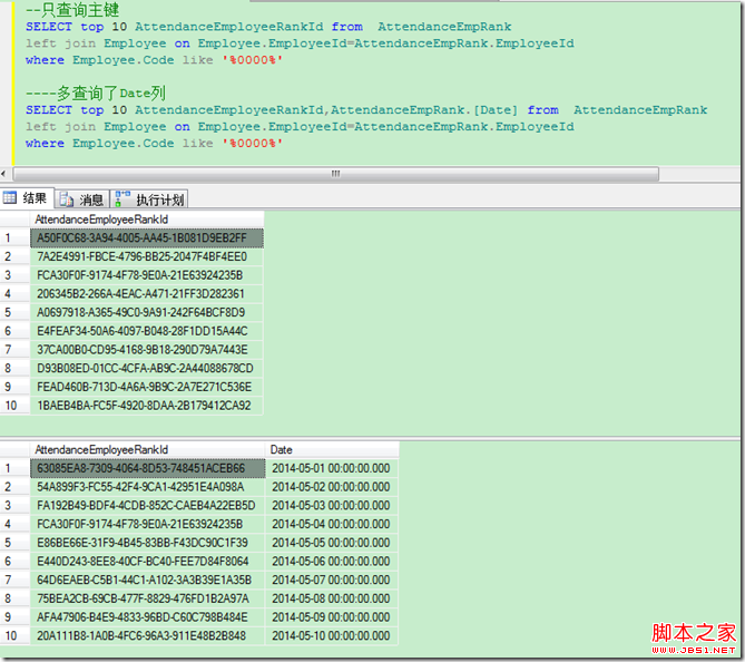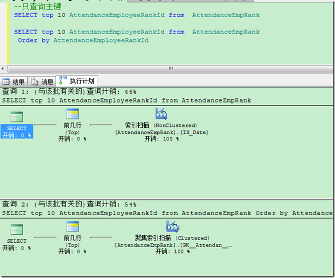 查询AttendanceEmpRank表,主键是AttendanceEmployeeRankId,而且是聚集索引