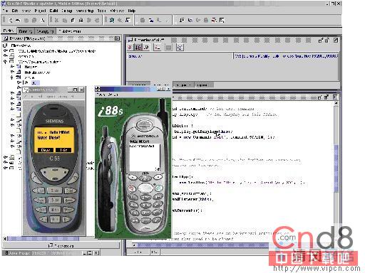 随着新的规范的推出,Sun、Motorola、Nokia、Borland等都推出了各自的J2ME的开发工具和集成开发环境(IDE),并受到了开发者的广泛好评。据统计,到2003年1月下载J2ME无线应用开发工具(即J2ME Wireless Toolkit,参见http://java.sun.com/prodUCts/j2mewtoolkit/)的人次已经超过了515000。与之而来的是J2ME开发队伍的不断壮大,目前全球J2ME开发人员的总数已经超过了二百万。图2是一个典型的支持J2ME应用程序开发的IDE,开发者可以完成编码、调试、部署并借助移动设备的模拟器完成功能测试。
