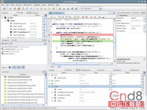 Java debugger工具JSwat 3.2 发布了。 JSwat是一个可扩展的,单机的,绘图的Java debugger前端(基于Netbean 平台)。应用由Javasoft提供的Java Platform Debugger Architecture (JPDA)。特性包括有条件中断和监视