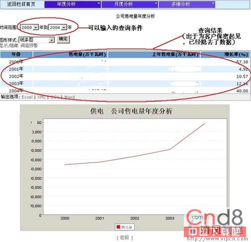 让我们从一个实际的案例例谈起,看看我们是如何扩展 Eclipse 来辅助和规范我们的开发工作的。这是一个电力公司销售分析系统,里面有众多的各种各样的分析主题,例如要分析一个电力公司的销售情况,用户可以选择时间范围来分析公司的销售情况,如下图所示: