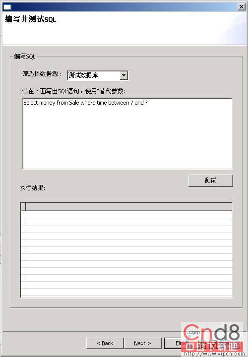 3.单击next,在这里输入SQL,并且可以直接测试。参数用?代替。小组成员可以直接在这里直接编写,测试SQL,再最后会自动生成Java代码。