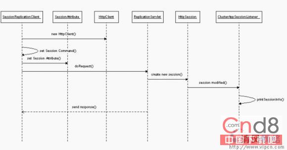 当一个复制客户端程序运行的时候,他首先设置一个作用指令用于这样操纵SESSION(例如,添加一个新的属性到SESSION,从SESSION中移除一个已存在的属性,或则让一个SESSION失效)。然后客户端通过在Commons HttpClient框架使用HttpClient和PostMethod类调用ReplicationServlet。基于这些SESSION命令,servlet生成一个新的SEESION或者修改一个已经存在的SESSION并且转到一个WEB页面中瞻示SESSION细节。假如在治理SESSION中有任何错误,则转到一个错误页面。我写了一个定制的SESSION监听类(ClusterAppSessionListener)用于跟踪SESSION治理的细节,例如新SESSION的创建,修改或则终止已经存在的SEESION。