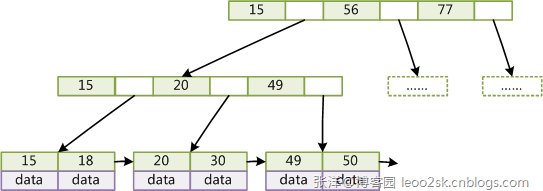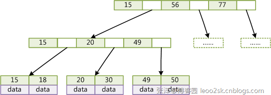 如图4所示,在B+Tree的每个叶子节点增加一个指向相邻叶子节点的指针,就形成了带有顺序访问指针的B+Tree。做这个优化的目的是为了提高区间访问的性能,例如图4中如果要查询key为从18到49的所有数据记录,当找到18后,只需顺着节点和指针顺序遍历就可以一次性访问到所有数据节点,极大提到了区间查询效率。