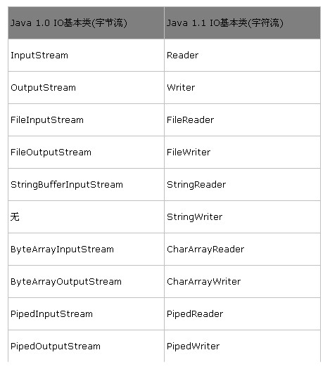 表01_Java 1.0和Java 1.1的IO基本类对比表