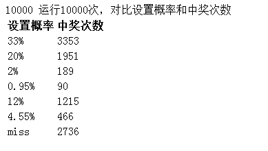 <tr><th>设置概率</th><th>中奖次数</th></tr>
