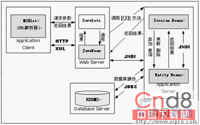 考虑到系统的安全性、扩展性和可维护性,我决定在J2EE平台下开发服务器端程序,这样做系统复杂度低、成本低、系统性能优越。系统客户端是运行在Java手机上的,因此必须充分考虑这一特点,并在开发中加以应用。系统设计的目标是分开业务逻辑和表示层,它是一个典型的四层分布式MVC应用体系架构,下面将对其设计思想和实现原理进行具体阐述。