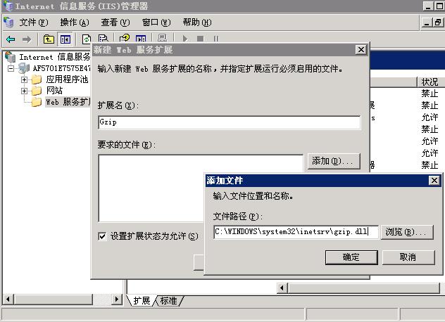 c:\windows\system32\inetsrv\gzip.dll,然后启用这个扩展。