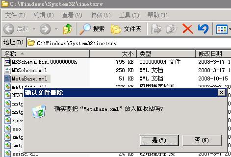 开始 > 运行中输入 c:\windows\system32\inetsrv (如果错误,请按照图中输入)> 找到 MetaBase.xml