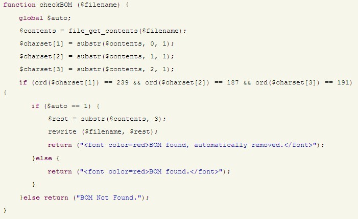 echo "filename: $basedir/$file ".checkBOM("$basedir/$file")." <br>";