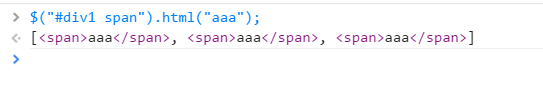 1.如果执行 $("#div1 span").html("aaa"),则数组内的所有对象都会改变.如下图