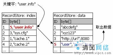 3.根据ID号获得另一个RecordStore的记录,然后就可以读取、更新和删除该记录。