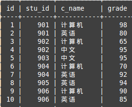mysql> select c_name,max(grade) from score where c_name='英语';