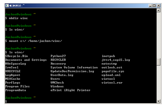 挂载到 MSYS 下可以方便使用,新版的 MinGW 已经默认自动挂载。