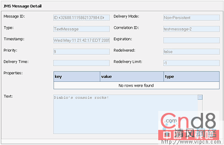 BEA WebLogic Server 9.0引入了一个控制台应用程序,它答应JMS治理员查看目的地内容,并创建新消息或删除执行中的消息。这项特性本身就足以使您升级到WebLogic Server 9.0!图2展示了示例队列中执行中的消息。