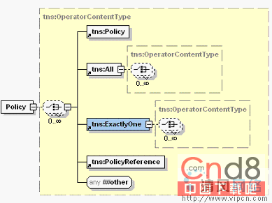 浏览过这些类似于字母汤(译者注:字母汤是一种罐头汤,里面是切成ABC字母图案的细面条,让小朋友边喝汤边把里面的字母排成单词来玩。)的标准,我们会发现,基本上,这些标准通常由由XML schema来描述,例如WS-Policy XML Schema, the Collaboration Protocol Profile (CPP) XML Schema, the Collaboration Protocol Agreement (CPA) XML Schema.再次强调,假如数据是XML形式,它就应该以XML方式来存储、治理和对待参照图1的WS_Policy Schema 与WS-Policy 框架标准相关的ws-policy.xsd文件。他标准化了服务消费者和服务提供者之间策略是如何交互的。