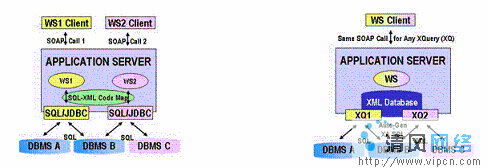 对SOA存储库操作的native XML接口是XQuery.为了探究XML数据库的完全潜力,XQuery是一个用来生成、治理、检测、治理XML数据的途径。XQuery还提供了一个标准的方案来统一异构的数据源来使得他们看起来像一个单独的服务器。