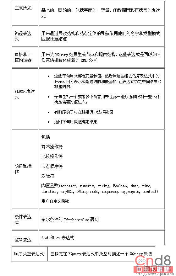 XQuery是一个多功能的语言。例如,表达式可以合成从而随意生成复杂的对一个或多个XML数据集合的查询。XQuery同时提供了基于XML模式和DTD的强类型机制和基于原始 XML数据的弱类型机制