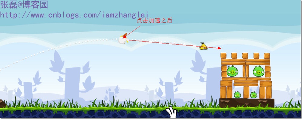 需求解析:冲锋陷阵鸟,在不点击加快的景象下,和红色小鸟样,当点击了加快按钮,X轴标的目标速度变成本来的3倍,Y轴标的目标变成本来的3倍,