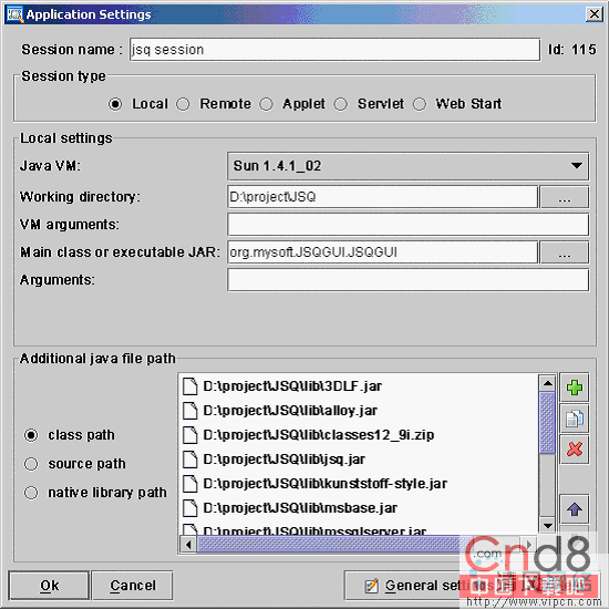 然后就该Additional java file path中加入所有需要的classpath或者jar文件