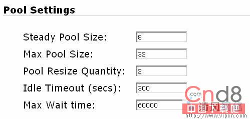以下连接池的缺省设置,可以根据自己环境的情况作相应的调整。