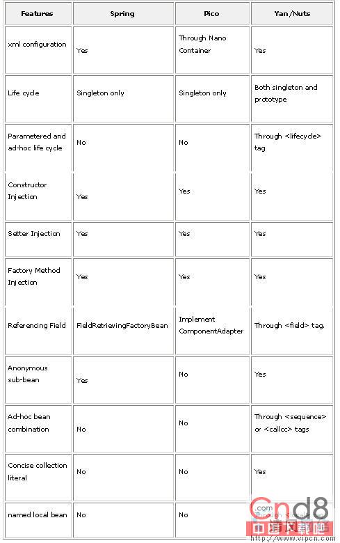 IOC容器比较:Spring Vs Pico Vs Yan[组图]