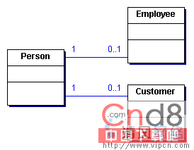 假如上述任意一个判定不成立,那么把A和B定义成继续关系可能是不合适的,改用关联关系可能更加稳固、正确。例如,图二违反上面的第一个判定,因为“雇员是一个由人扮演的角色”成立。另外,它还违反了第二个判定,因为雇员确实可能改变其类别(身份),例如某个时候它可能是顾客。这样,一个既是顾客又是雇员的人就要有两个独立的对象来描述,从而使保存在Person类里面的信息重复出现,带来了两个数据副本之间数据不一致的风险。