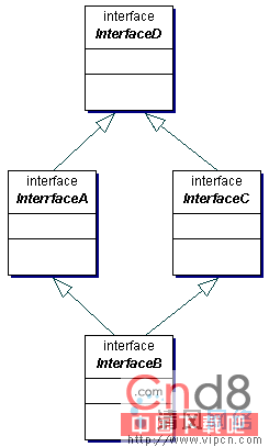 接口可以从一个或者多个其他接口扩展。UML一般化关系(实线封闭箭头)可用来描述这种关系,如图五所示。