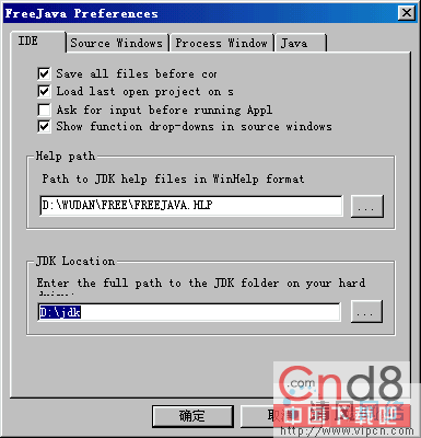 这里能设置各种参数,假如改变了JDK的安装路径,在这里填上就可以了。后面的选项里面可以设置各种字符的颜色与字符大小。推荐使用默认值。