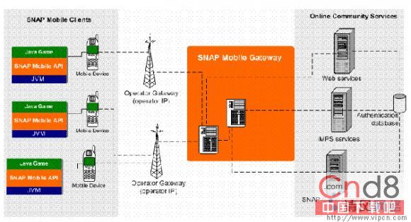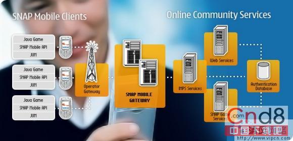 SNAP Mobile APIs是Nokia公司和SUN公司提供给全球众多移动游戏开发者的基于Nokia SNAP 移动平台(像N-Gage™ Arena.)和Sun Java Wireless Toolkit (version2.3)的一个功能强大的J2ME客户端的API开发包。在SNAP APIs中提供了基于可高效拓展服务的手机多人在线游戏的开发环境,可以使开发者很方便的为程序添加网络特性,比如注册、登陆、即时通信、多人在线游戏、认证、好友列表、聊天、游戏积分排行、用户帐户和个人信息等游戏特性,大大地简化进行手机多人在线游戏J2ME程序的开发工作。