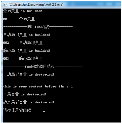 cout<<"===========fun函数调用结束=============="<<endl<<endl;