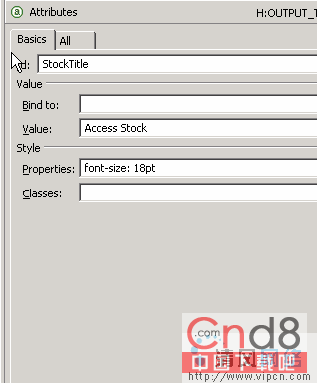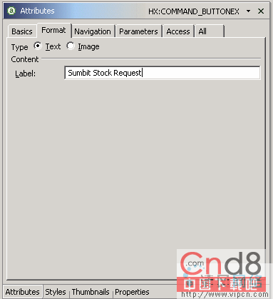 选择新的按钮,然后转到 Attributes 视图。选择 Format 选项卡并为 Label 输入 Submit Stock Request。JSP 上的按钮将会反映这个新的标签。