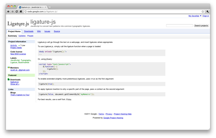 Ligature.js是勿庸置疑,一个脚本,增加了漂亮的连笔字的任何类型的文本。一个字体爱好者必须拥有的!