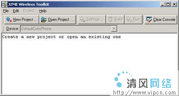 1.从开始菜单打开KToolBar:选择程序,然后J2ME Wireless Toolkit 2.2,然后KToolbar。将会打开一个应用程序窗口,如图2所以。