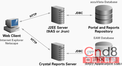 然后我们有一个 accuVista 报表库,该库存在于各自的数据库中。这就是存放报表相关元数据用于装载门户的地方,这样用户就可以登录进来查