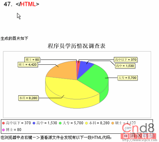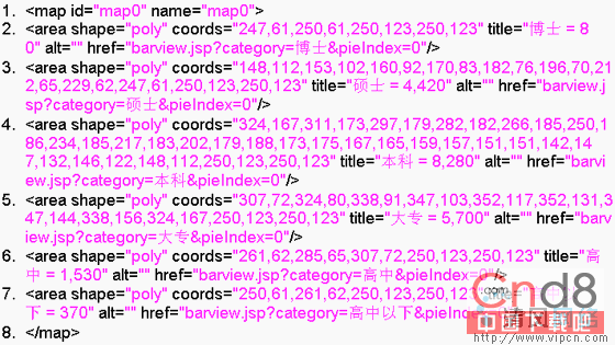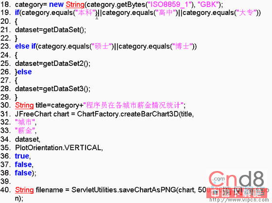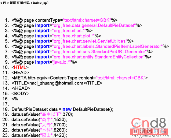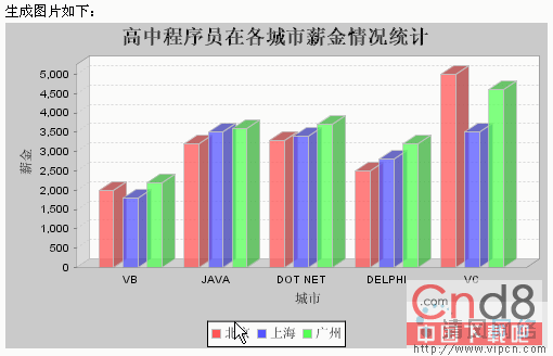 假设有一个关于程序员北京,上海,广洲三地程序员学历,开发语言,薪金情况的调查。首先要以饼图显示程序员学历的分布情况(index.jsp)。点击饼图的每一部分会以柱状图显示该层次程序员所用开发语言和薪金的情况(barview.jsp)。重点演示怎样在饼图上添加链接。